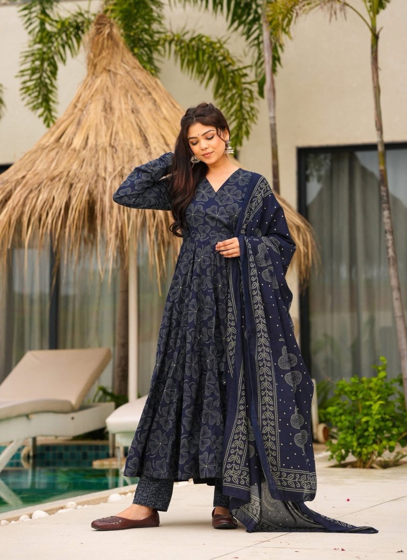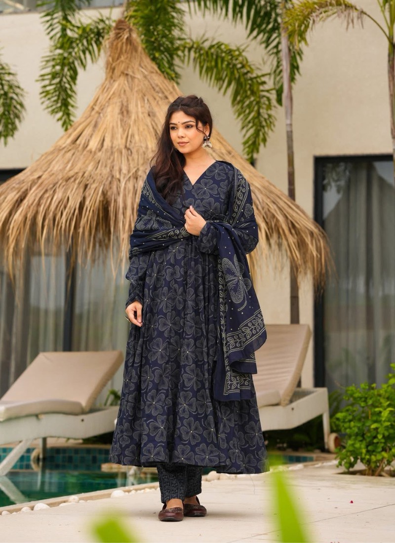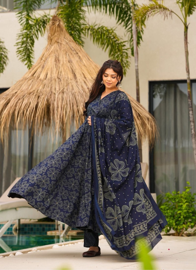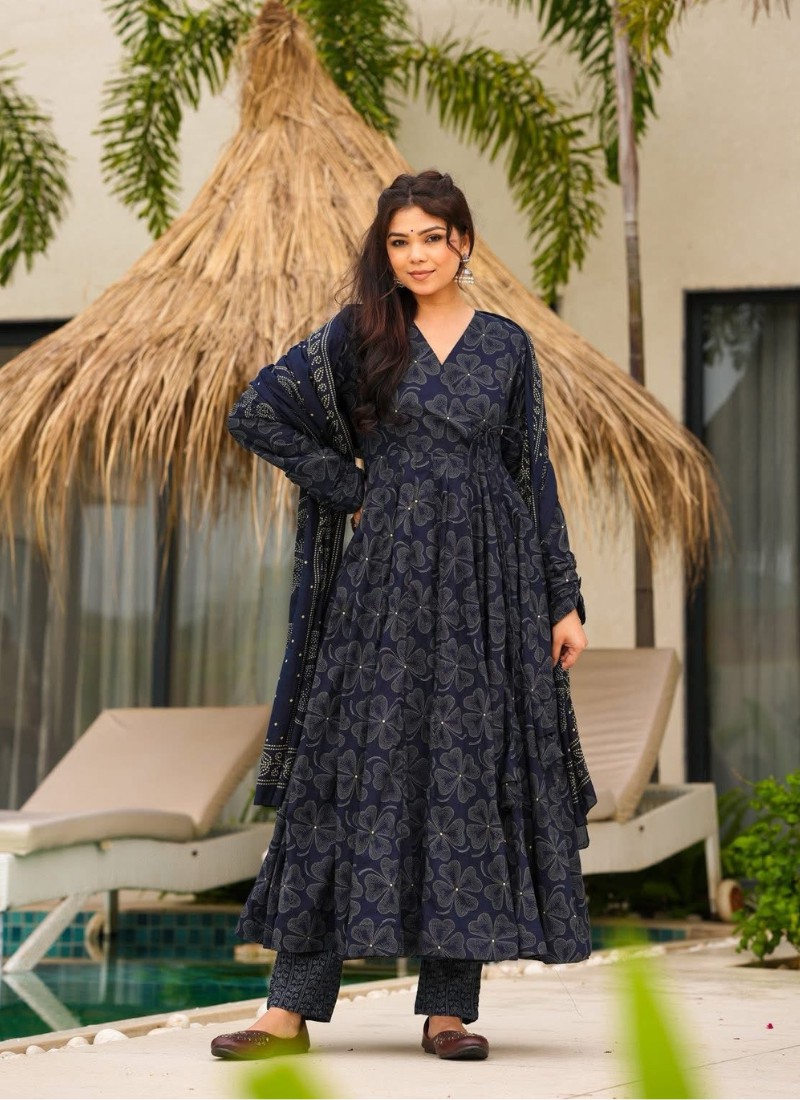 🌸 Elegant Printed Anarkali 3 Piece Set 🌸
