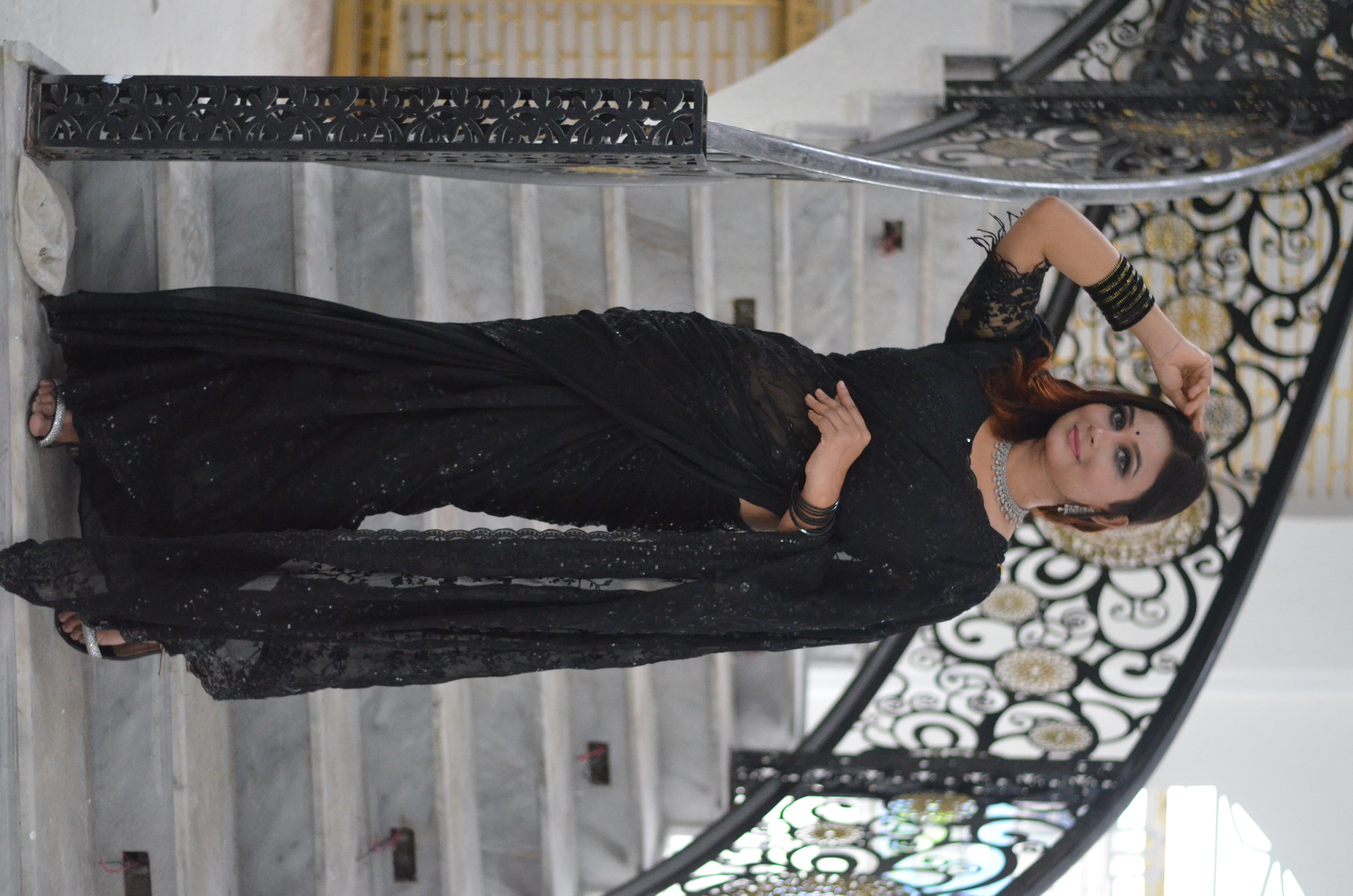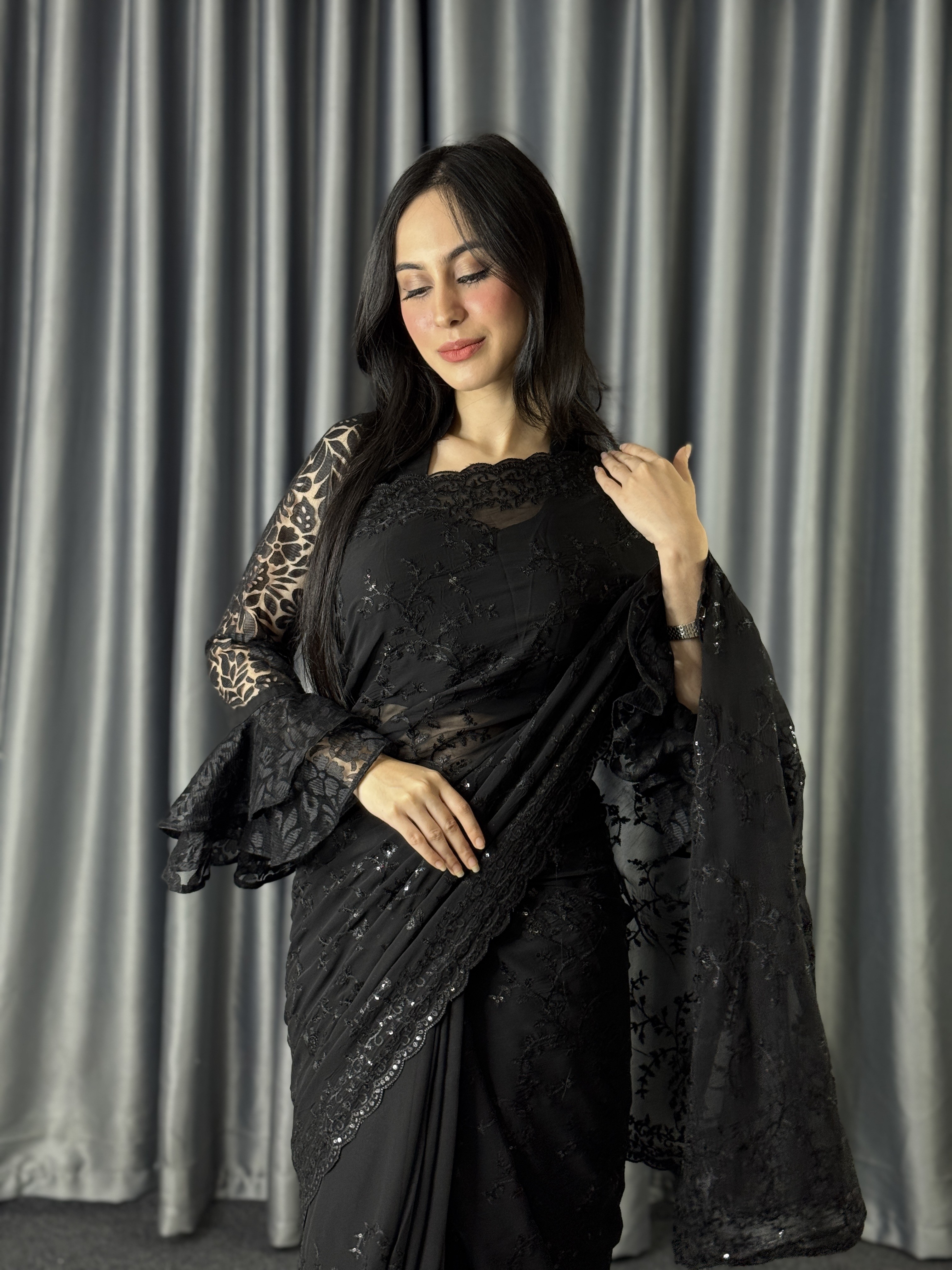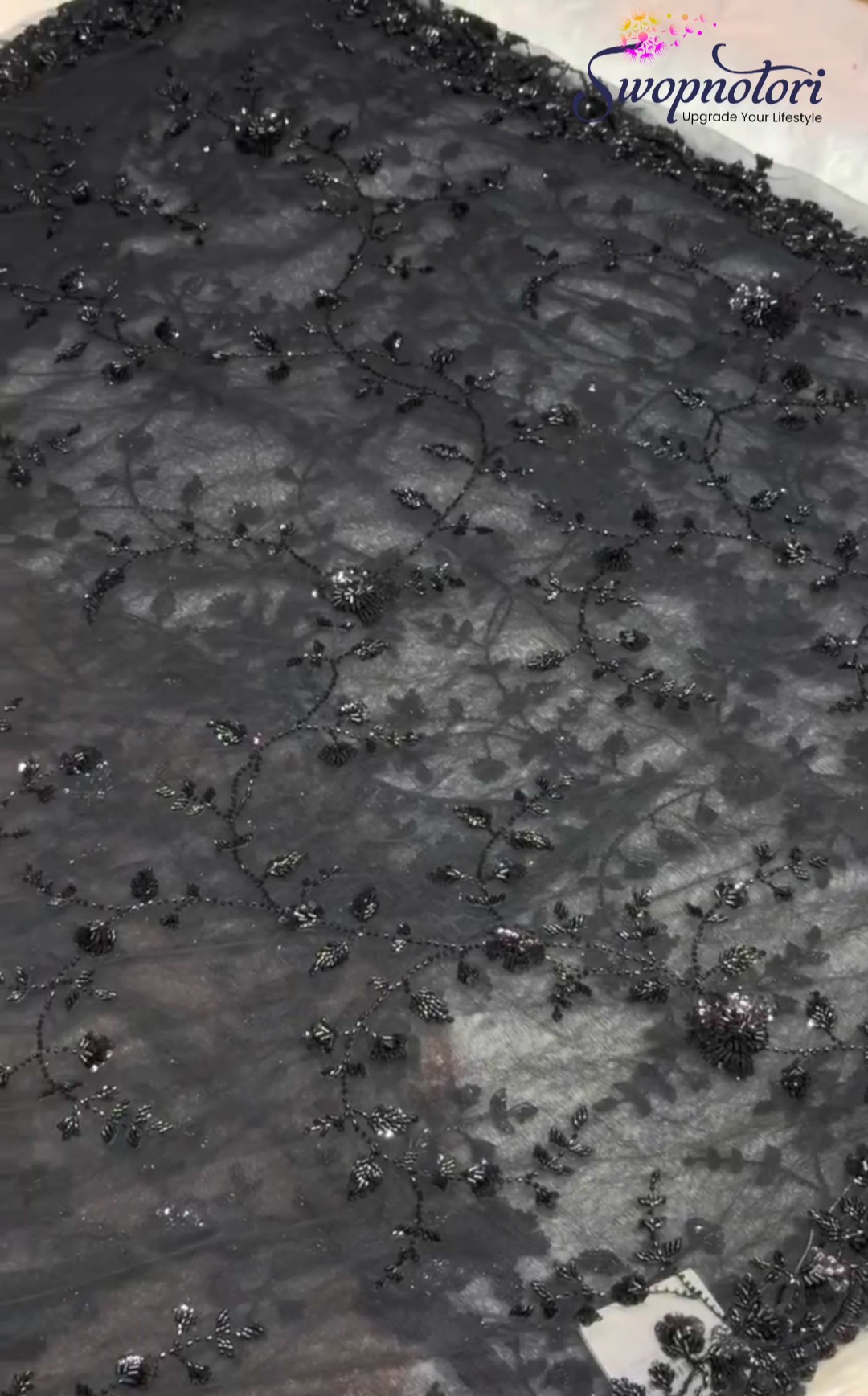 The elegance of black paired with shimmering sequences makes this piece truly timeless — perfect for weddings, parties, or any grand occasion.